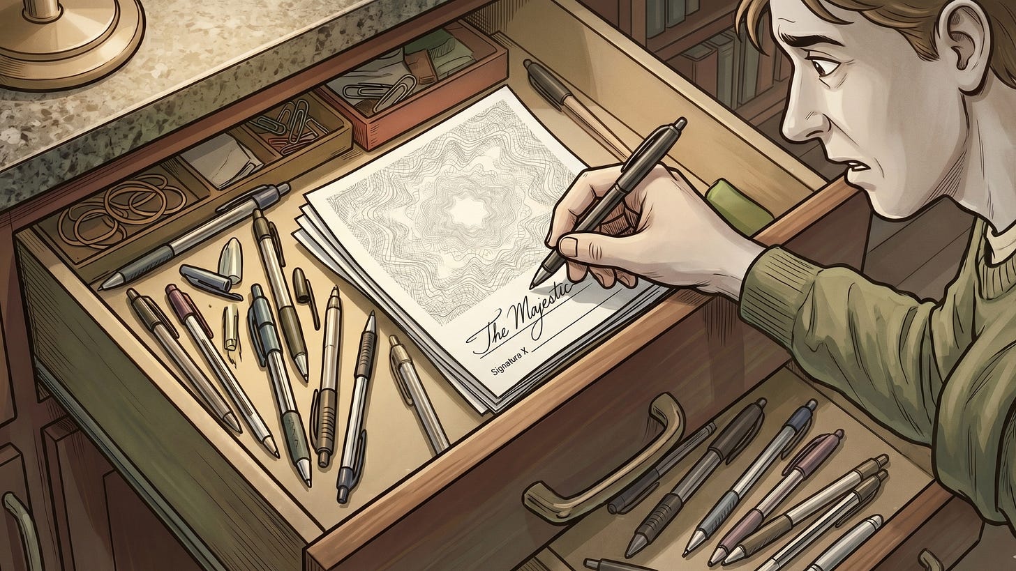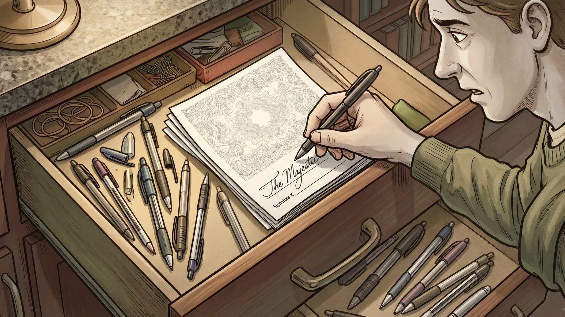 The pens don’t stop working randomly. They stop working at the precise moment they become the only pen you actually need.