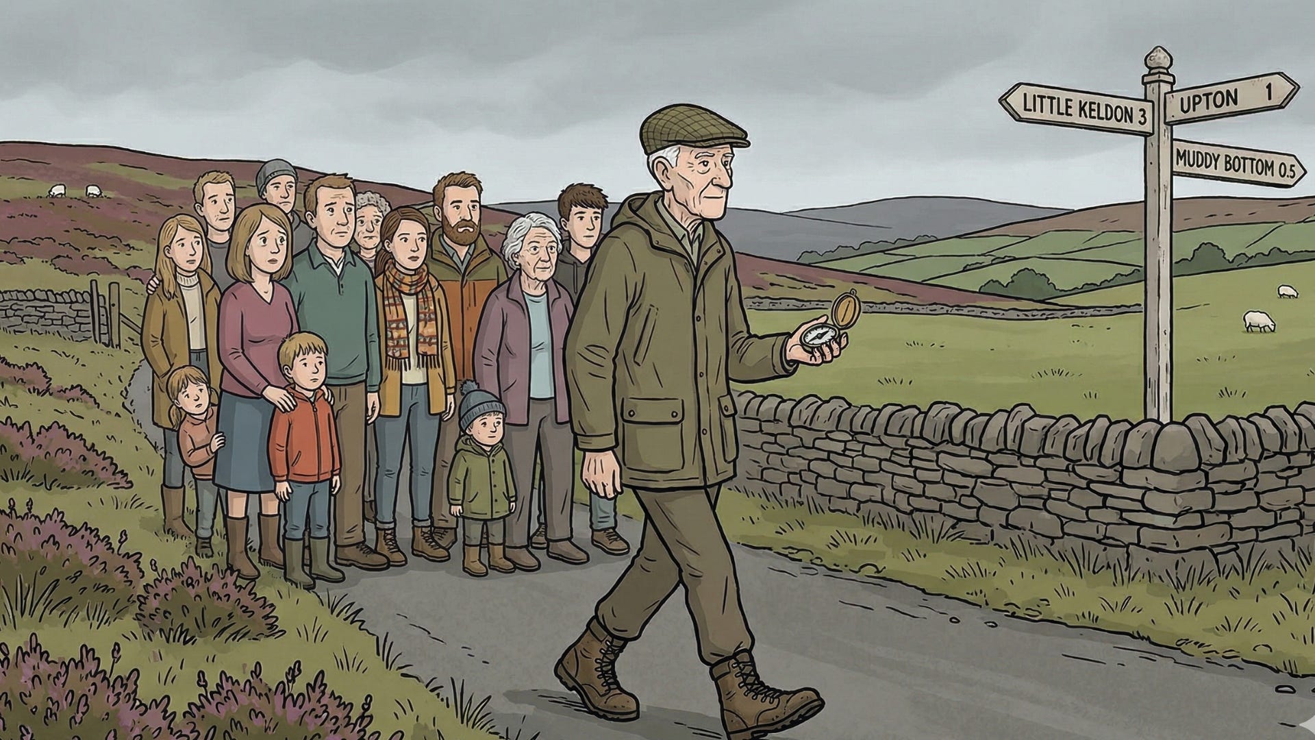 The doctor said he needed exercise. He said walking was good for the heart. Someone bought him a pair of proper walking boots and off he went down the road with the quiet satisfaction of a family that’s doing the right thing.
